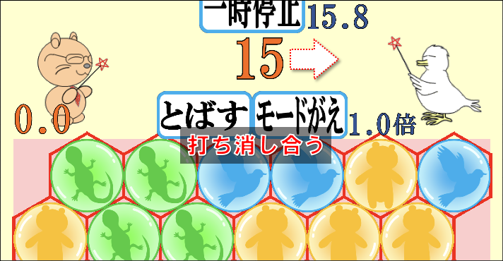 放出されたエネルギーは、『とばす』ボタンをさわると相手に飛ばすことができます。ただし、エネルギー放出の動作が続いている間は、エネルギーを相手に飛ばすことはできません。