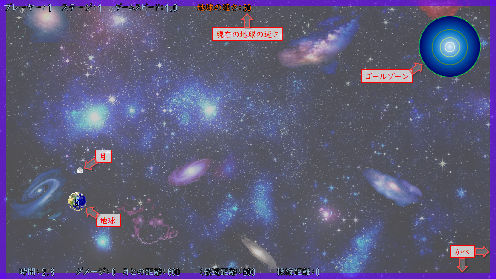 地球か月がブラックホールにすいこまれると、そのステージのクリアは失敗となります。