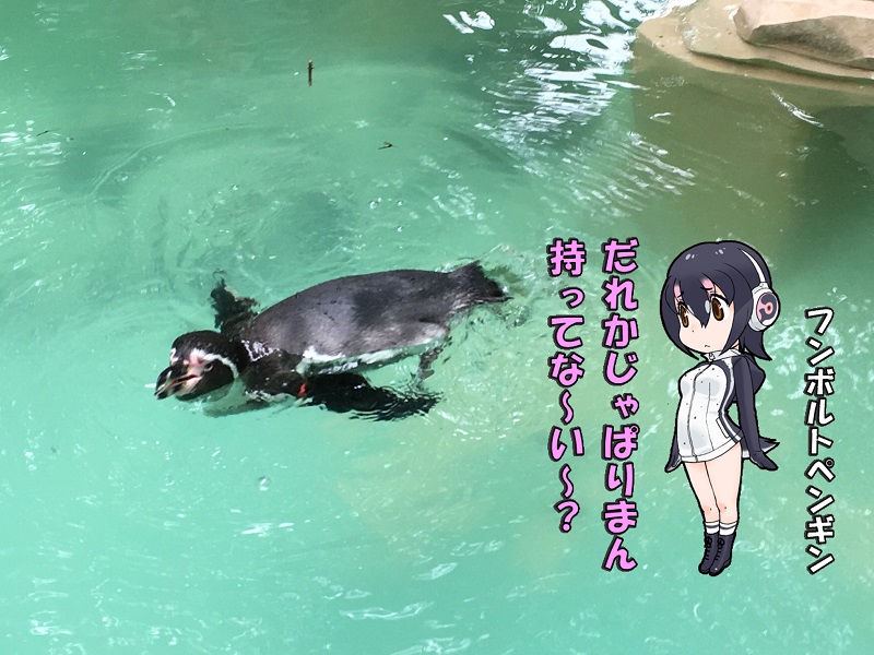 フンボルトペンギンは水面を泳いでいてものんびりした感じです。