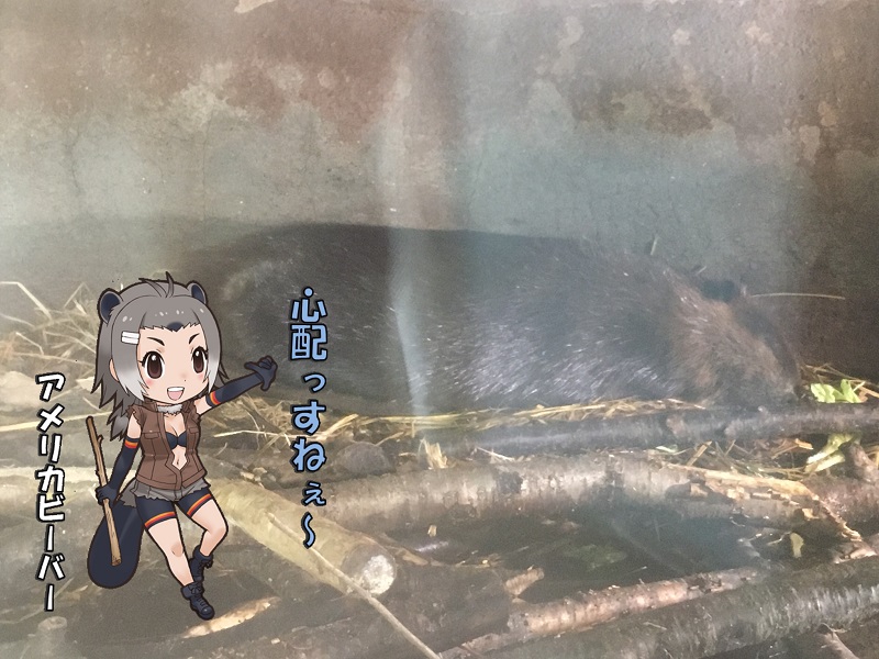 夕方になって、アメリカビーバーが起きていました。しかし心配性なのか、ドームの中からは出ず、二人でずっと毛づくろいをしていました。
