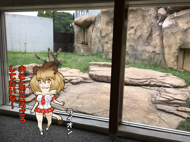 ライオンのなわばりは、ガラス越しに見れる場所と、堀をはさんで外で見れる場所があります。基本的に、それぞれの場所に1頭ずついるようです。
