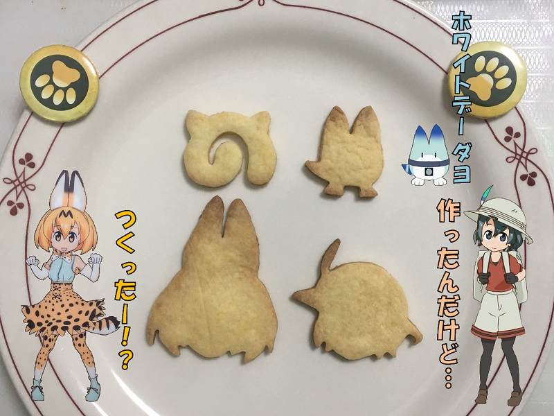 ホワイトデー(2021年)ということで、けものフレンズ1期アニメ的な形のクッキーを作ってみました。