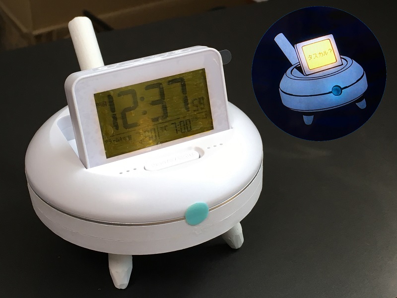 目覚まし時計に少し手を加えて、ケムリクサの「シロ(しろいの)」っぽい感じにしてみたのを撮った写真です。