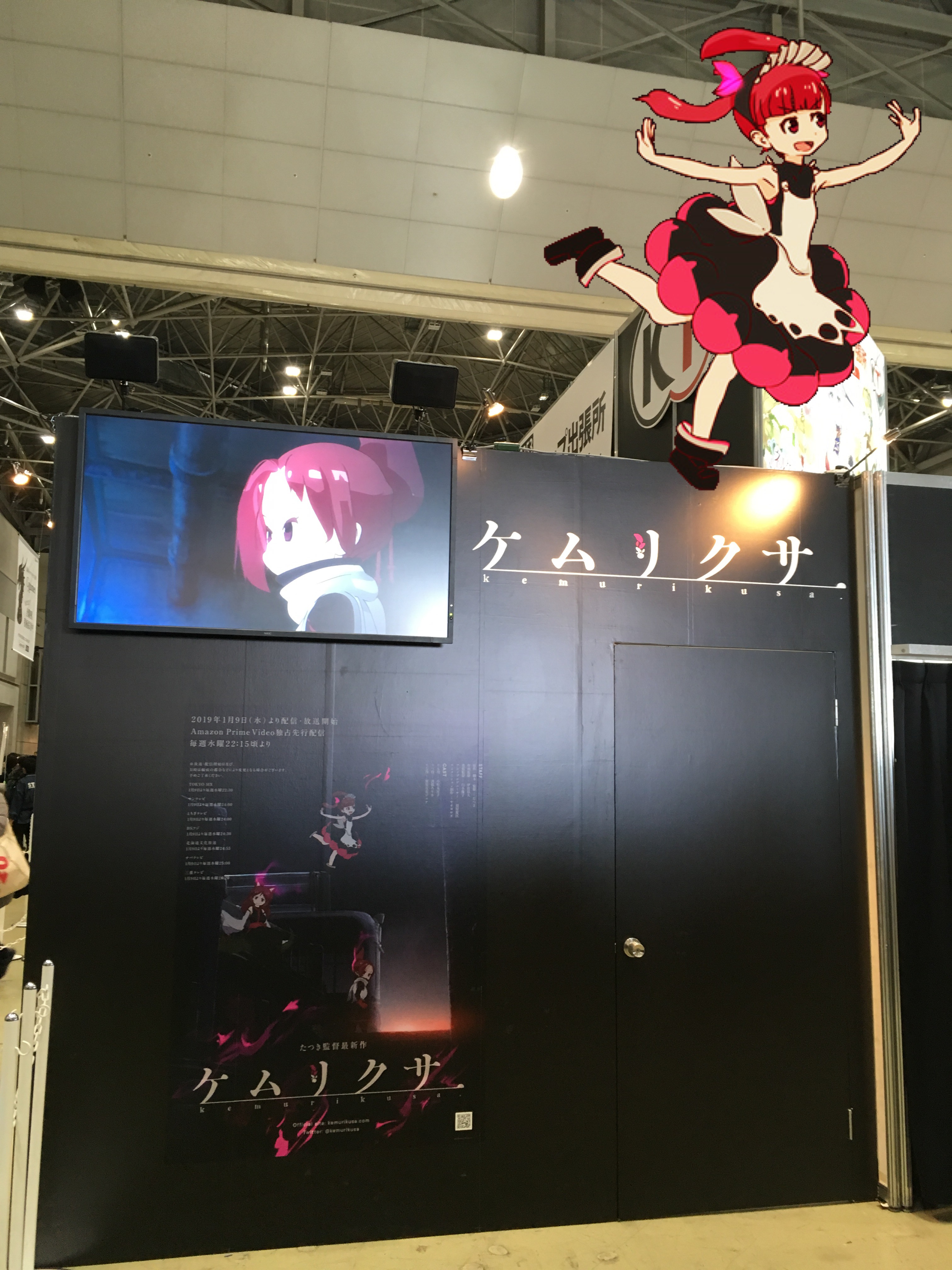 コミケ95のケムリクサのブース、右側の壁です。プロモーション映像が流れていました。