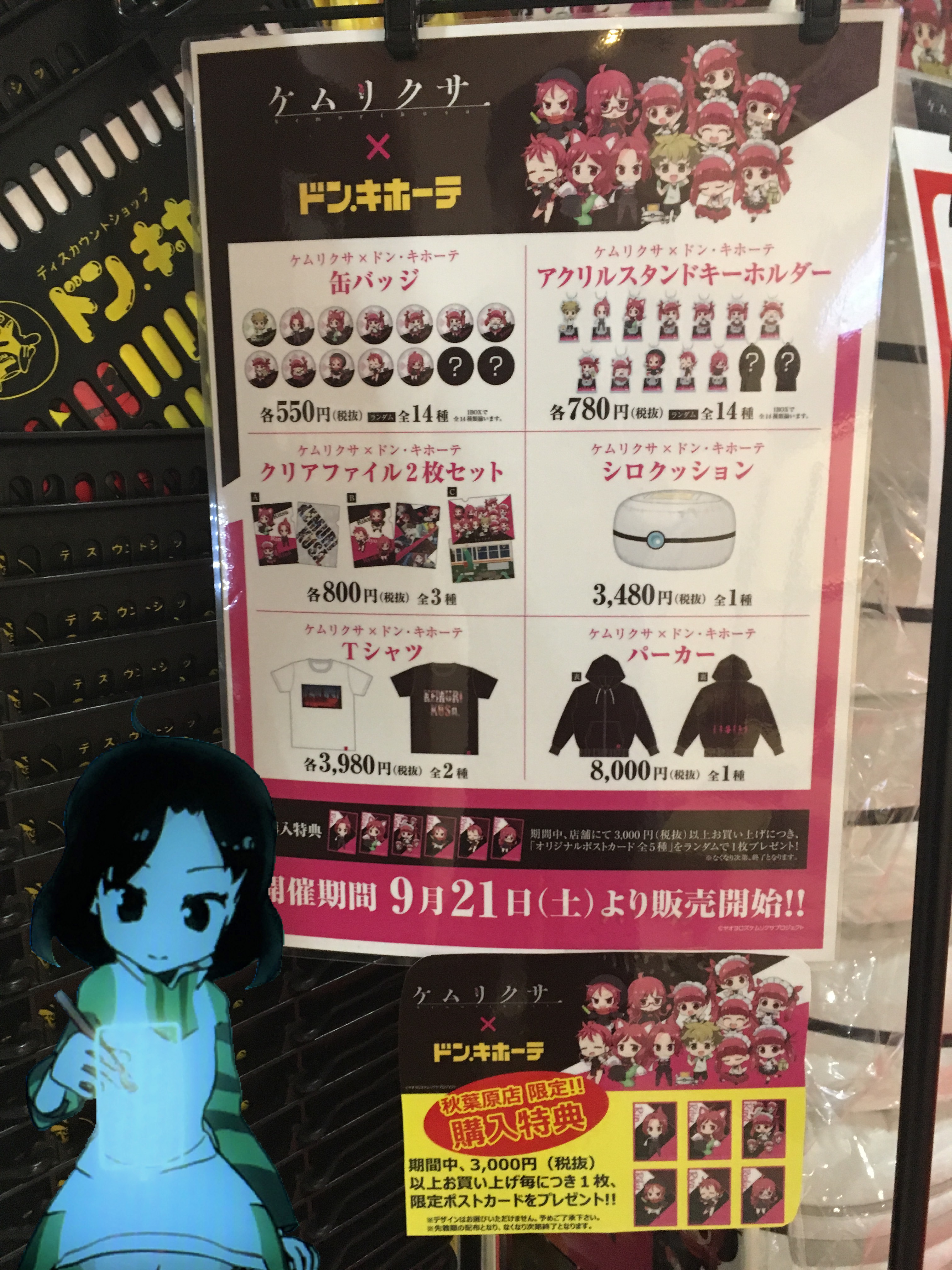 「ケムリクサ×ドン・キホーテ」(2019年9月21日[土]〜)の秋葉原店に2019年9月21日[土]に行ってきた時に撮った写真です。