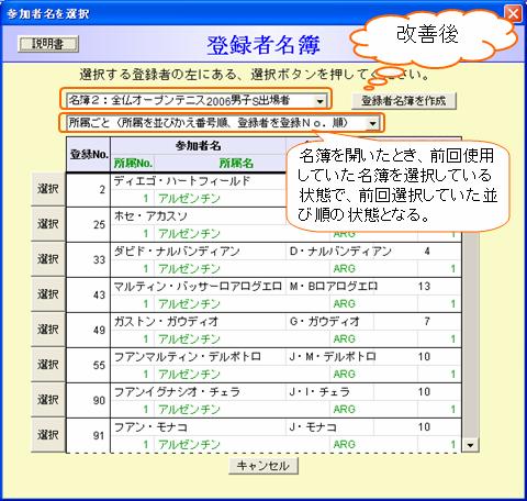 名簿を開いたとき、前回使用していた名簿を、前回使用していた並び順で開くように修正