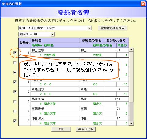 選択できるようにする。参加者リスト作成画面で、シードでない参加者を名簿から